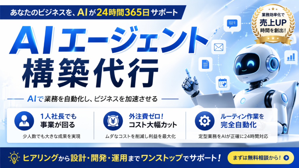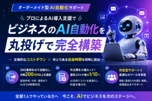 AIエージェントの構築や実践型のAI顧問サービスを通じてルーティン業務を自動化し、「外注費ゼロ」「運用コスト1/10」の実現と、経営者としてのゆとりある時間を同時に創出します 。