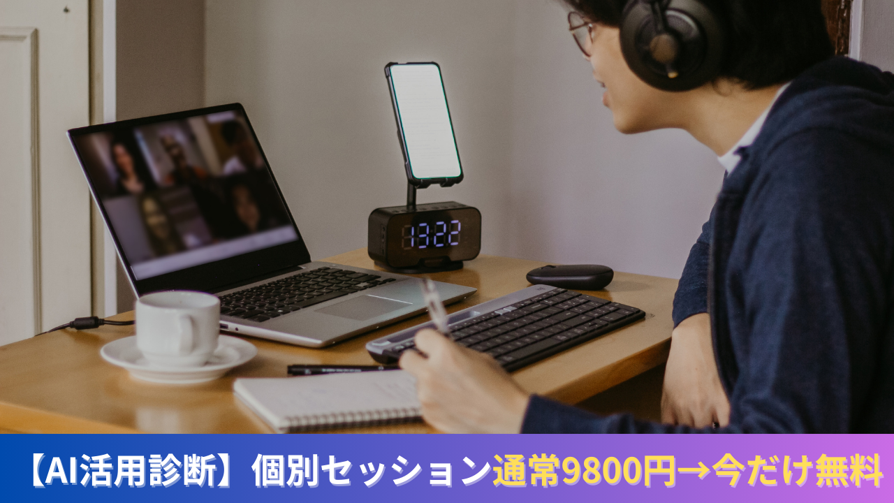 そこで現在、通常9,800円で提供している「AI活用診断」オーダーメイド個別セッションを、期間限定で無料にて実施しています。