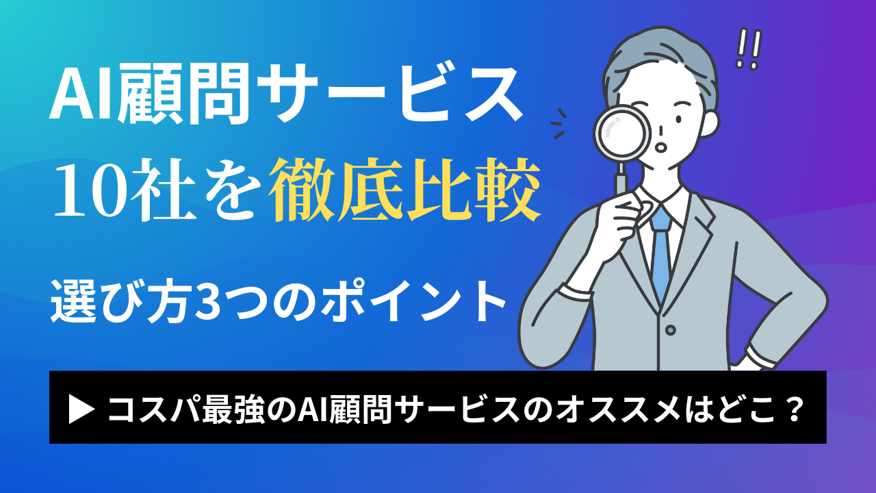 国内の主要なAI顧問サービス10社を徹底比較し、自社に最適なパートナーを選ぶための3つの具体的なポイントを解説しました。