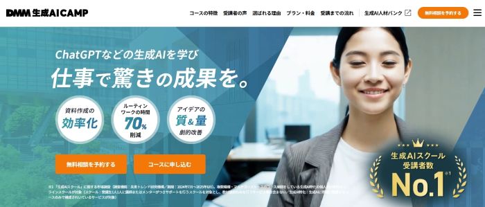 AIを「使う」ビジネス・副業向け(DMM 生成AI CAMP、侍エンジニアなど)に明確に分かれています。