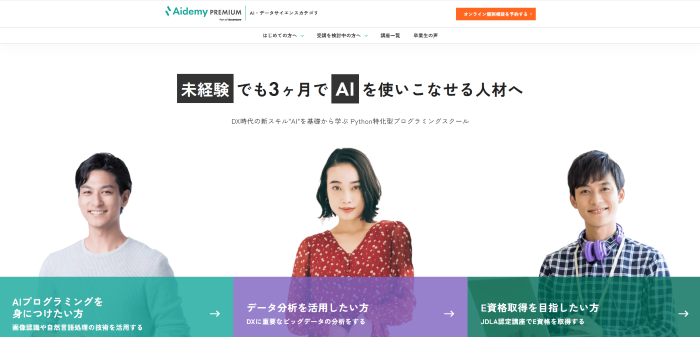 Aidemy Premium:未経験でも3ヶ月でAIを使いこなせる人材へ