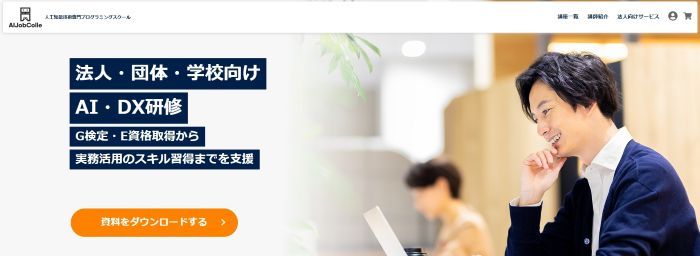 特に、AIを「作る」側のスキル習得に強みがあり、AI関連企業への転職サポートや、JDLA(日本ディープラーニング協会)が認定する「E資格」の取得支援で高い実績を持っています。